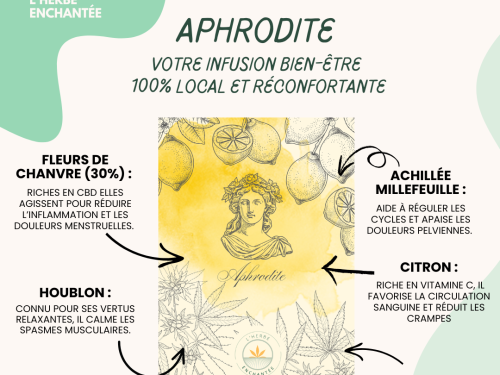 Inspirée par la déesse de l’amour et de la féminité, Aphrodite est une tisane créée pour soutenir les femmes durant leurs cycles menstruels. Elle vise à apaiser les douleurs et inconforts tout en insufflant une énergie douce et revitalisante. Aphrodite est le reflet de la force et de la beauté intérieure des femmes, parfaite pour ces moments où le corps a besoin de douceur et de réconfort.